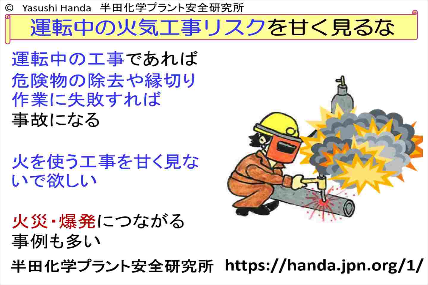 タンクに直接火を当てて、火気工事をしていた工事業者が爆発で死亡する事故は繰り返し起こっている