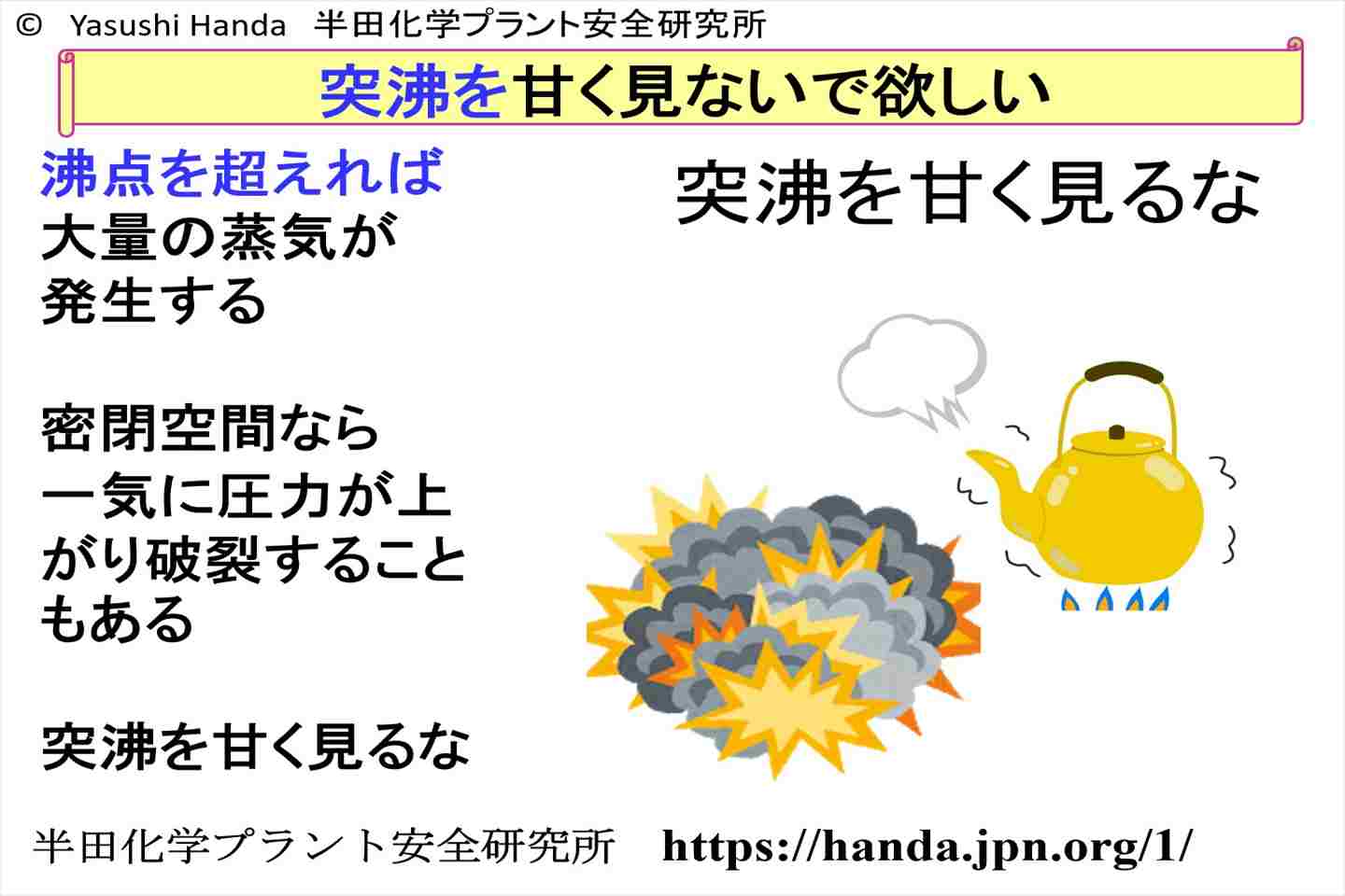 暖めれば、当然可燃性のガスを発生する。廻りには、空気が存在するからガスの量が徐々に増えていき爆発混合気ができてしまう。